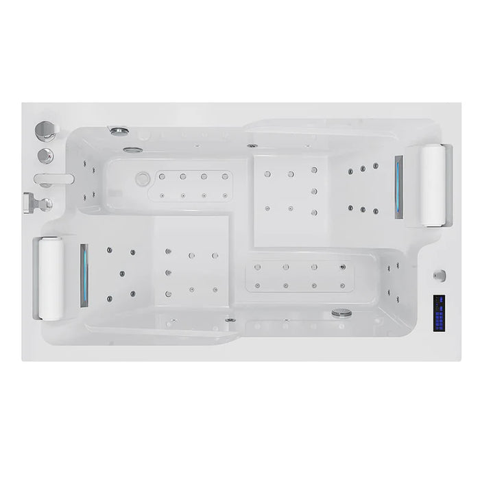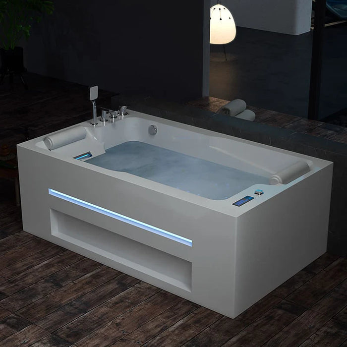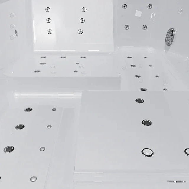 The tub features a large-scale jets system with 23 hydromassage jets and 30 bubble jets, ensuring immersive full-body zone therapy for both people in the tub. These two types of jets cater to individuals of all ages, including adults with tense muscles and tissues, as well as children and the elderly with sensitive skin. With comprehensive coverage for every part of the body, then total body loosening can be achieved.