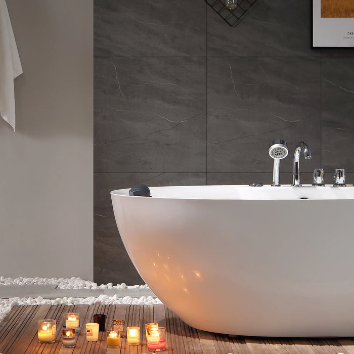 Empava 71" Freestanding Whirlpool Oval Bathtub with Center Drain | EMPV-71AIS14