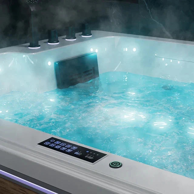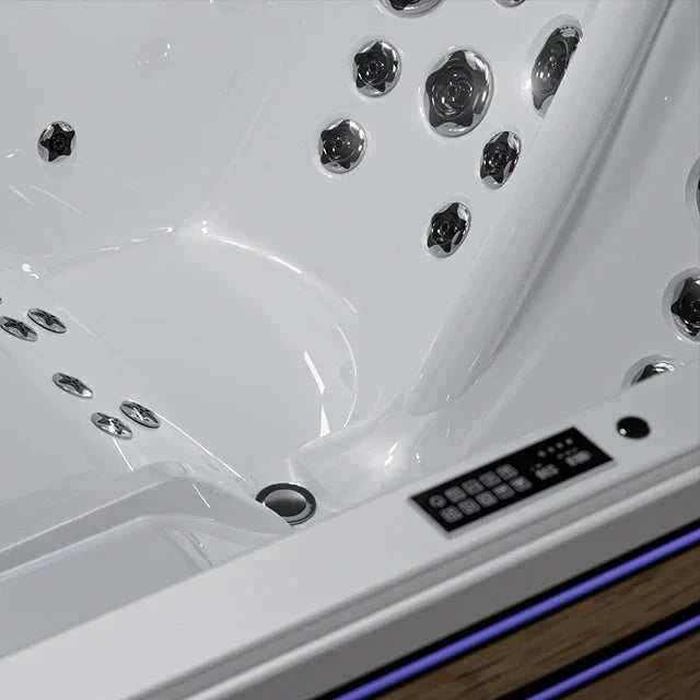 Are you seeking a luxurious bathing experience in an outdoor hot tub but prefer the privacy of an indoor setting? Why not consider an indoor alternative that replicates the exact configuration of its outdoor counterpart? This tub boasts a great quantity of 69 jets including 32 hydromassage jets and 37 bubble jets, a spacious capacity to fully stretch the body, the Bluetooth function, and upgraded in-and-out chromatherapy LED lights, which promise a luxurious yet secret revelry indoors. Forget to live, time confesses with luxury.